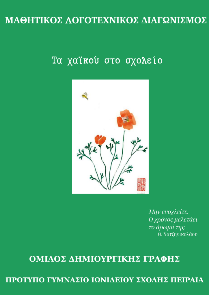 Για την προκήρυξη του μαθητικού λογοτεχνικού διαγωνισμού του Πρότυπου Γυμνασίου Ιωνιδείου Σχολής Πειραιά πατήστε εδώ.